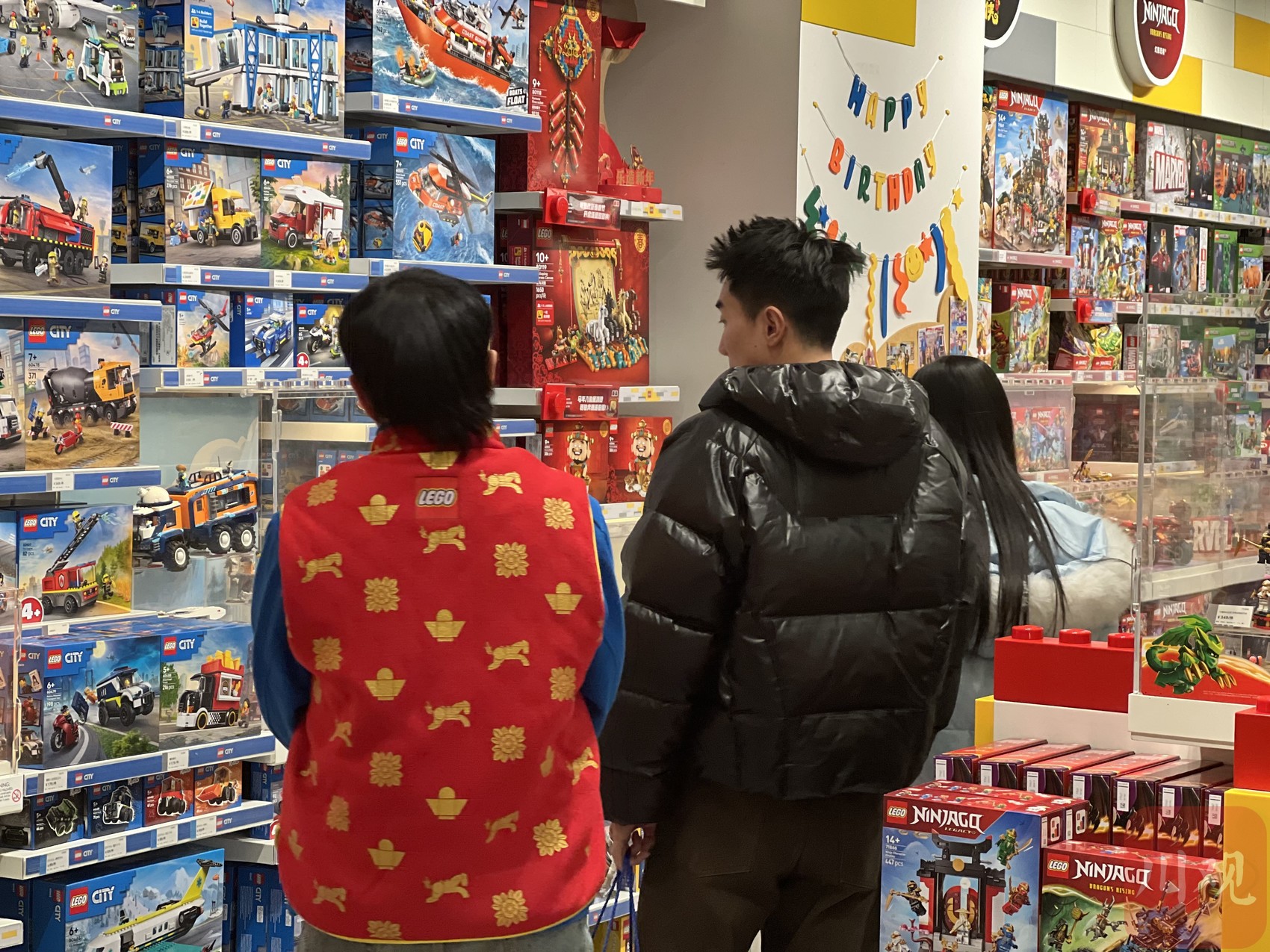 乐高门店里,年轻消费者驻足采购。