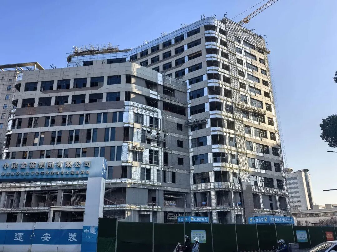 江宁妇幼保健院项目迎来阶段性新进展,大楼幕墙施工进入收尾阶段,室内装修有序推进,各项配套筹备工作同步发力,预计2026年内实现交付、运营。