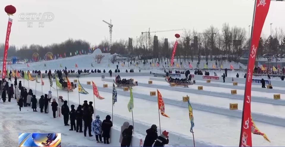 冰上龙舟保留了传统水上龙舟龙头龙尾的造型,底部加装专业冰刀,更考验选手们的默契与平衡性。比赛中,冰舟飞驰间冰屑四溅,周围观众和游客的呐喊助威声此起彼伏,使寒意凛冽的冬日变得火热起来。