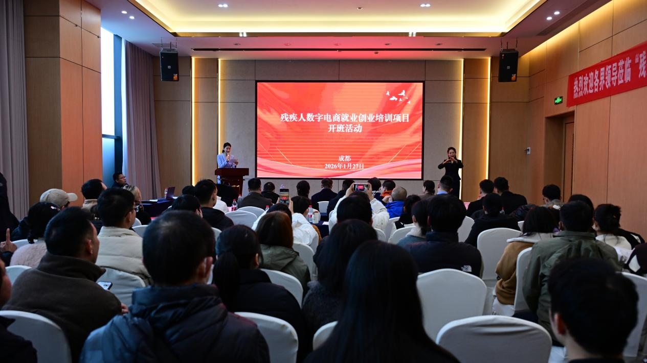 “妈妈——”1月27日,“残疾人数字电商就业创业培训项目”第二期在成都双流开班,在场学员大多是听障人士,与首期不同,现场除了手语翻译的轻柔手势,偶尔还夹杂着几声婴儿的哼唧和玩具掉落的轻响。