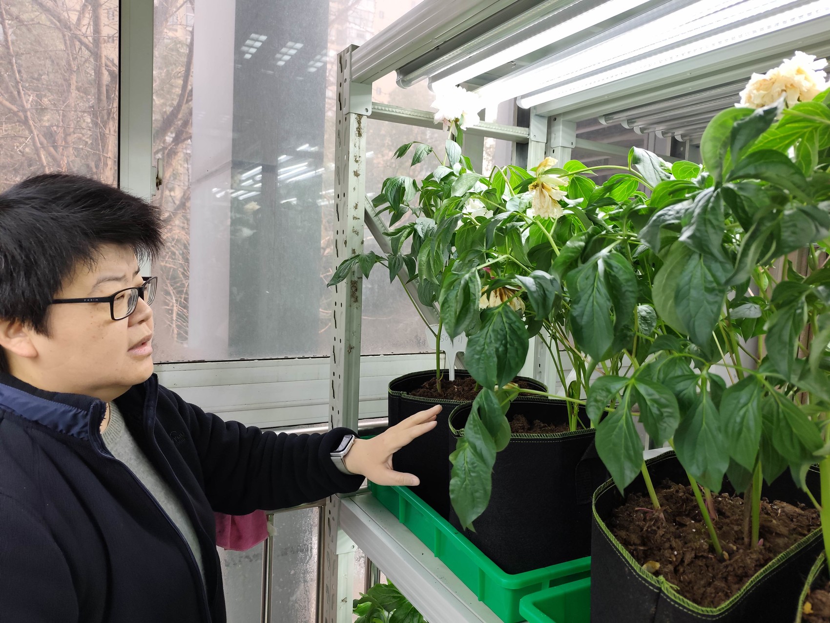 植物培育间内盛开的芍药。受访者供图
