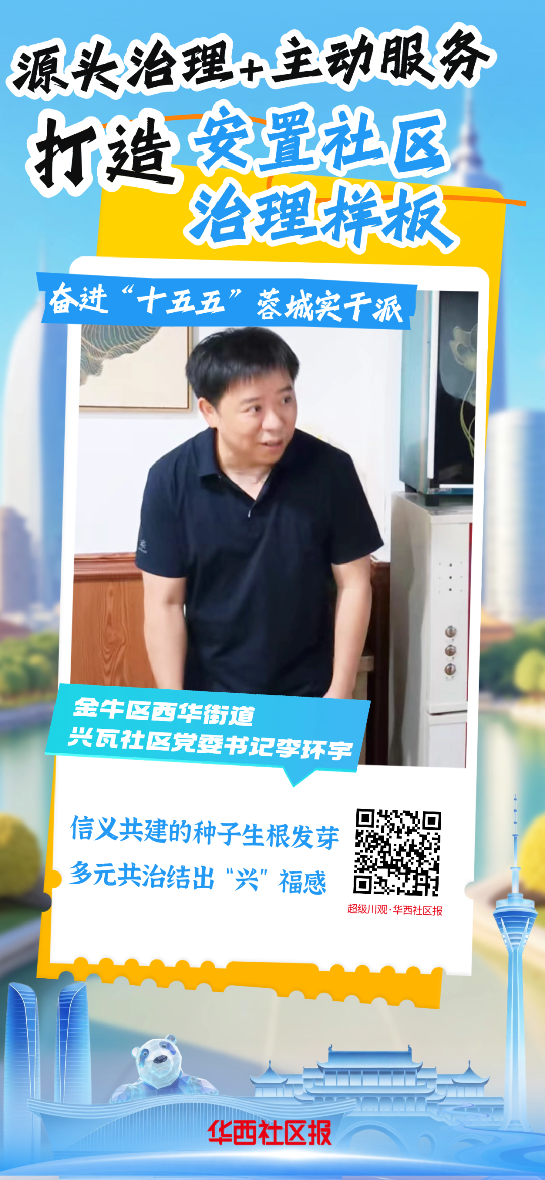 成都市金牛区西华街道兴瓦社区党委书记李环宇:“从‘一碗热乎饭’到‘一站式服务’,走深走实源头治理之路,打造安置社区治理现代化的‘兴瓦样本’。”