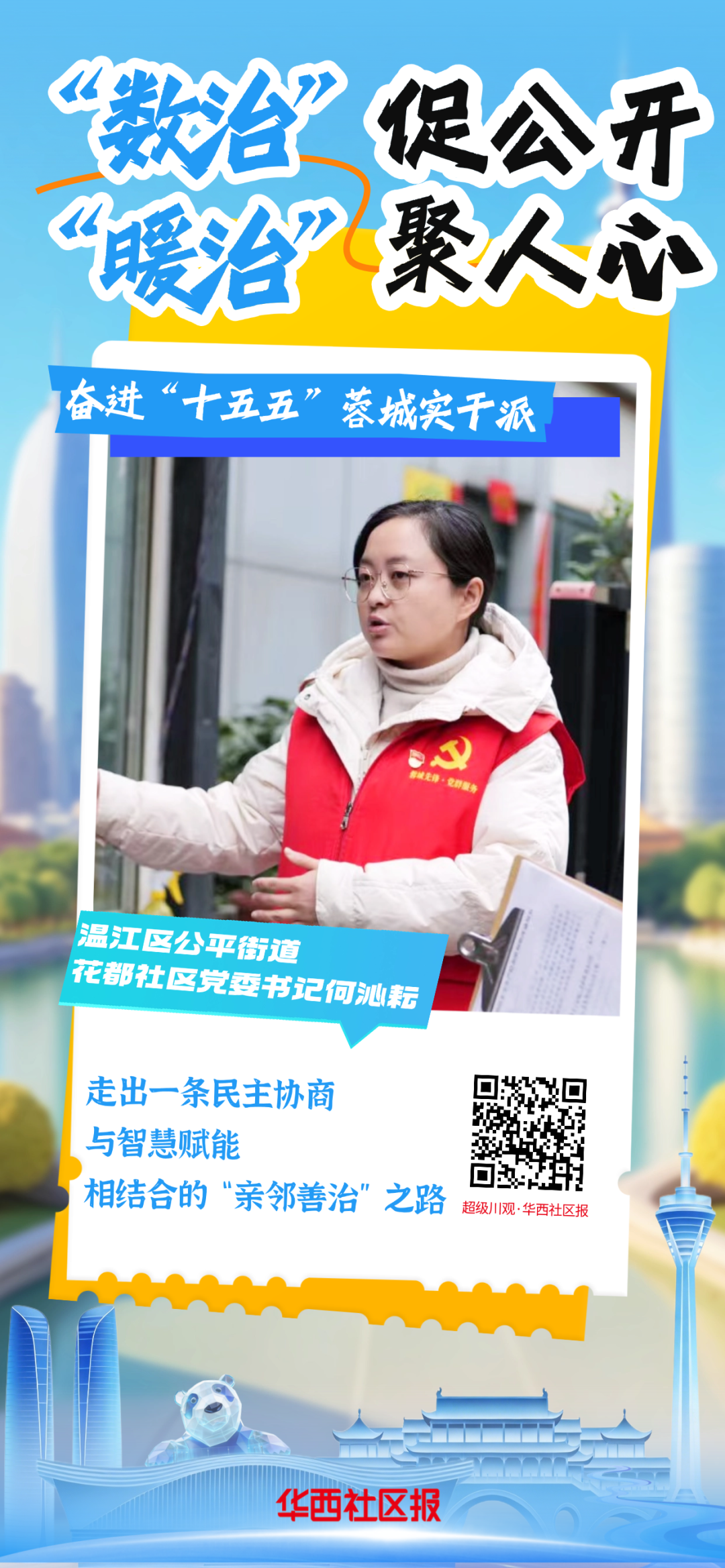 成都市温江区公平街道花都社区党委书记何沁耘:“用‘数治’促公开、以‘暖治’聚人心,走出一条民主协商与智慧赋能相结合的‘亲邻善治’之路。”