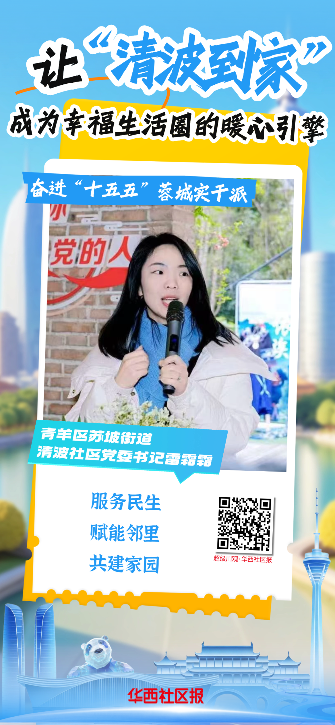 成都市青羊区苏坡街道清波社区党委书记雷霜霜:“将技能培训、就业对接与品质服务闭环打通,让‘清波到家’成为幸福生活圈的暖心引擎,走出一条服务民生、赋能邻里、共建家园的治理新路。”