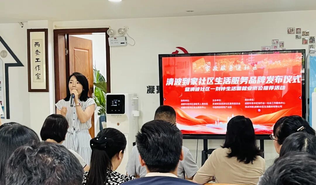 “随着社区老年群体规模扩大、居民就业需求日趋多元,加之青年力量不断融入社区建设,我们希望进一步优化服务效能,构建起社区、居民与商家共生共荣、共建共享的新生态。”清波社区党委书记雷霜霜介绍,“清波到家”社区生活服务品牌,聚焦家庭保洁、家电维修、养老照护、母婴护理、陪诊服务等7类居民高频需求,提供标准化、一站式服务。该品牌旨在打造集技能培训、就业对接、品质服务于一体的闭环生态,为成都15分钟幸福生活圈建设注入蓬勃生机,同时实现“服务—就业—治理”的良性循环。