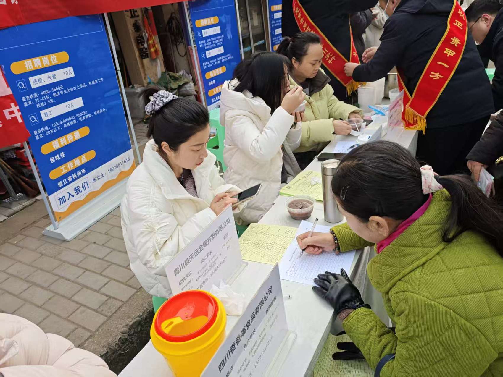 “村里一早通知有招聘会,过来看看有没有离家近的好岗位,没想到还能喝上暖心腊八粥,心里特别舒坦。”竹园镇沙石村村民何秀华手捧粥碗,一边品尝一边穿梭在各个企业展位前,仔细询问岗位要求、薪资待遇,脸上满是期待。招聘现场人头攒动、秩序井然,粥香与洽谈声交织成暖心画卷,求职者们或驻足咨询、或填写简历,企业招聘人员耐心答疑、精准对接,现场氛围热烈而有序。
