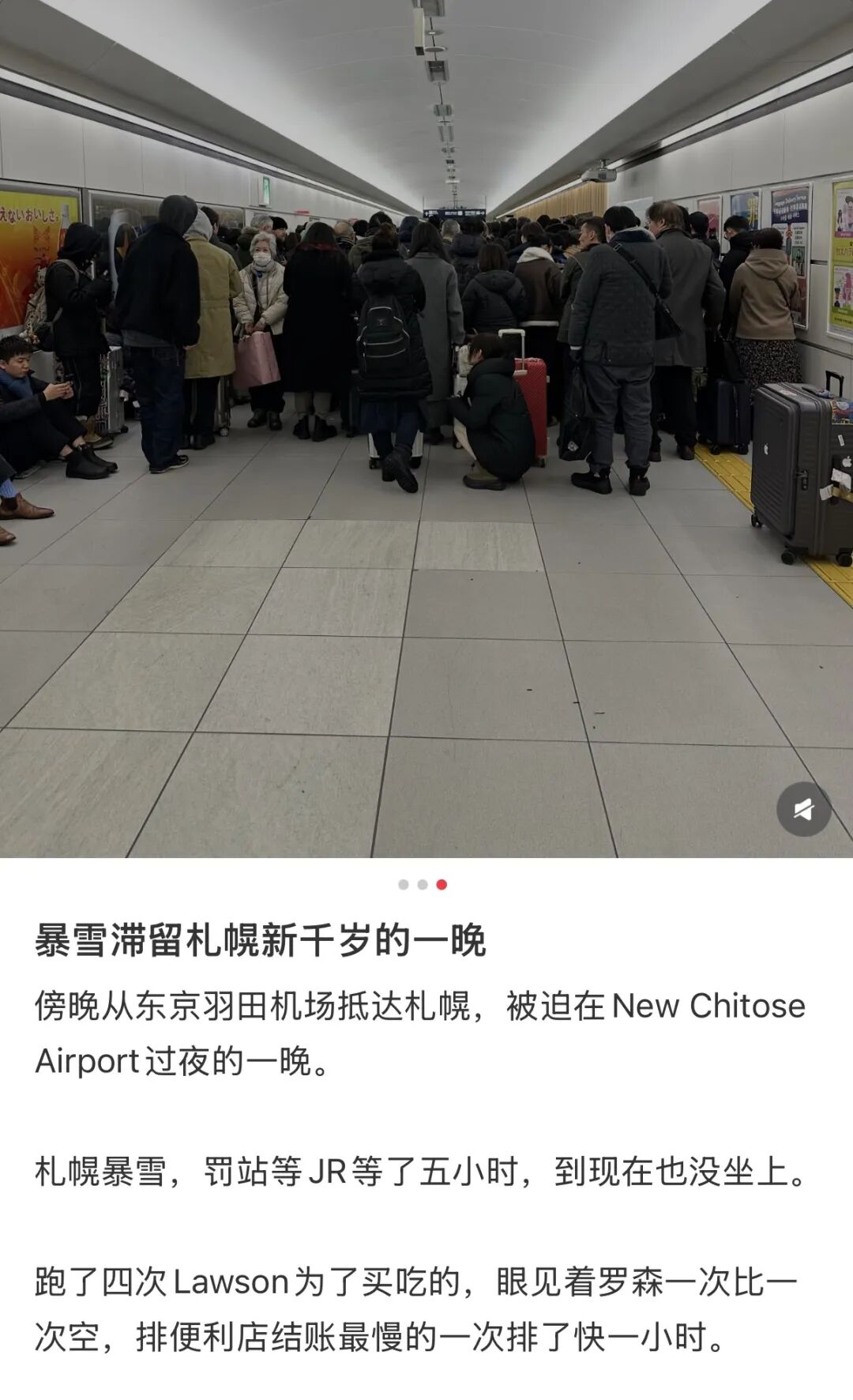 截至目前,仍未有官方消息通知航班、交通彻底恢复正常。直到昨晚,仍不断有网友晒出滞留机场、JR站的照片。