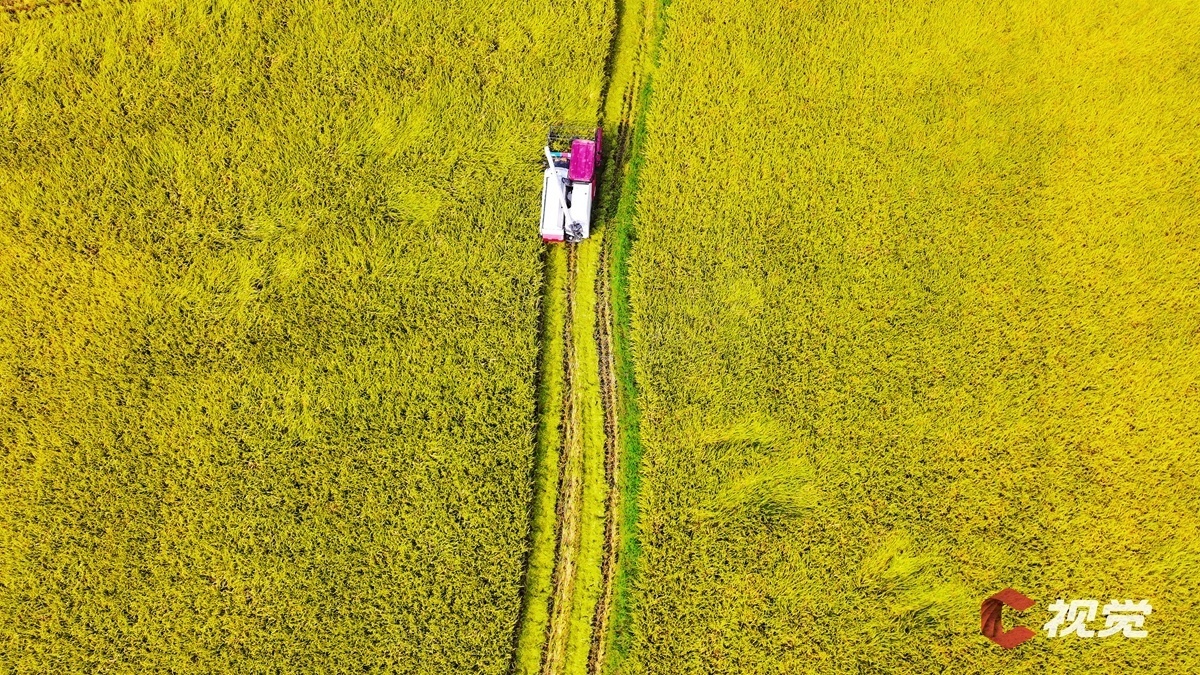成都市新都区军屯镇天星村水稻收割。 C视觉摄影师 李劲 摄(资料图)