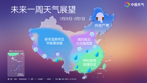 1月26日至2月1日,全国天气展望。来源:中国天气网