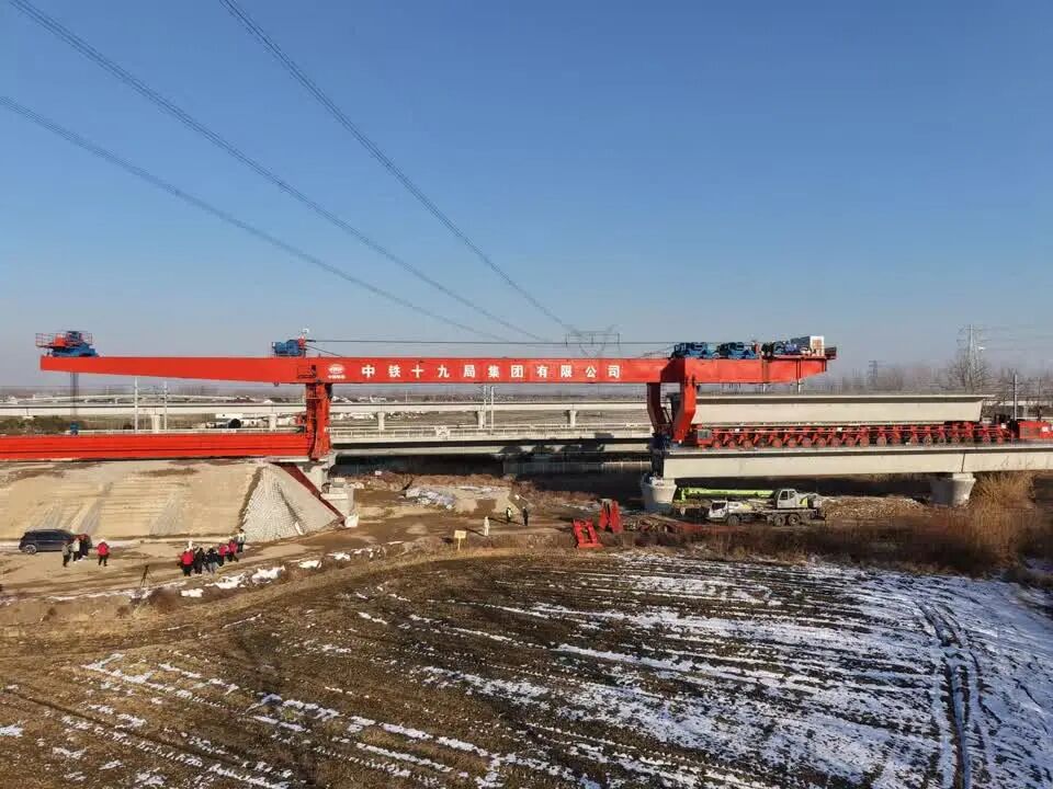 面临营业线施工协调多、交叉作业安全风险高等难点,项目部坚持科学组织、高效管理,在架设单线梁过程中,针对运距长的实际情况,项目采用两辆运梁车轮换作业、无缝衔接的运输模式,实行运梁车和架桥机双班制,提升设备利用率和架梁工效,比原计划提前13天完成架设任务。