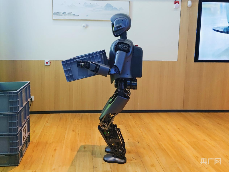 正在演示货物搬运的人形机器人(央广网记者 郑少纯 摄)