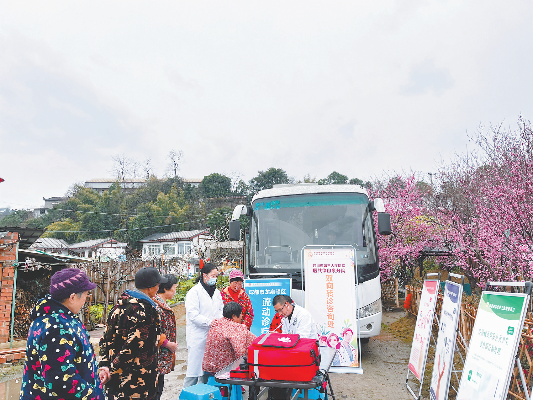 春日桃花漫山时的安心游览,盛夏村舍清幽中的健康守护,秋日层林尽染里的便捷诊疗,冬日暖意融融间的温情关怀,在成都市龙泉驿区山泉镇,群众的健康福祉正被医共体延伸的服务触角稳稳托举。作为四川省第三人民医院医共体单位,山泉镇公立卫生院打造的流动医疗服务体系,以“群众需求在哪里,健康保障就跟进到哪里”为导向,将日常诊疗、应急保障、分级转诊等多元服务送到山间地头、游客集散地,用“家门口的医疗服务”诠释着“以人民为中心”的健康理念,绘就出山区民生健康新图景。