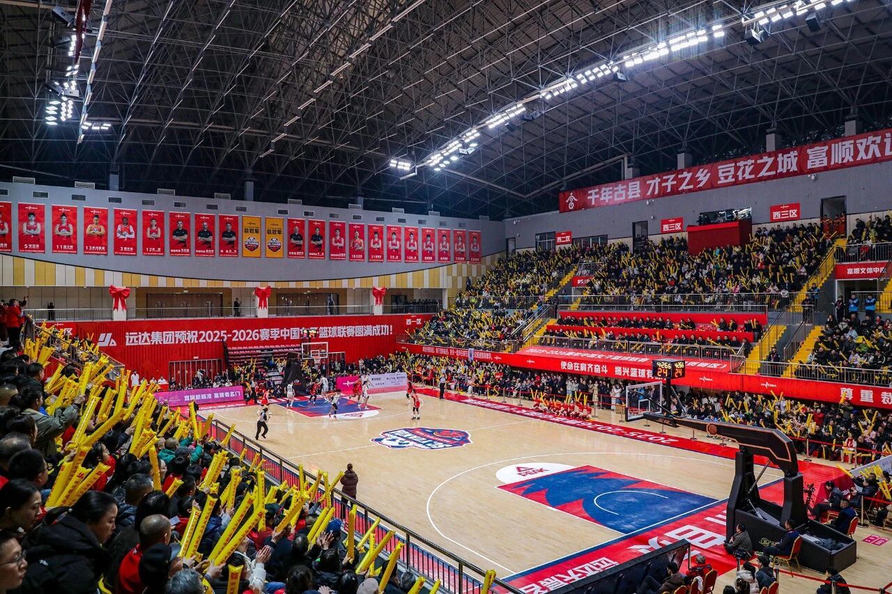 2025-2026赛季,四川女篮将自己的主场设置在了自贡市的富顺县文体中心,该中心将率先承办四川女篮的11个主场比赛。这一高水平赛事的到来,也让富顺这座县城因篮球而“疯狂”。