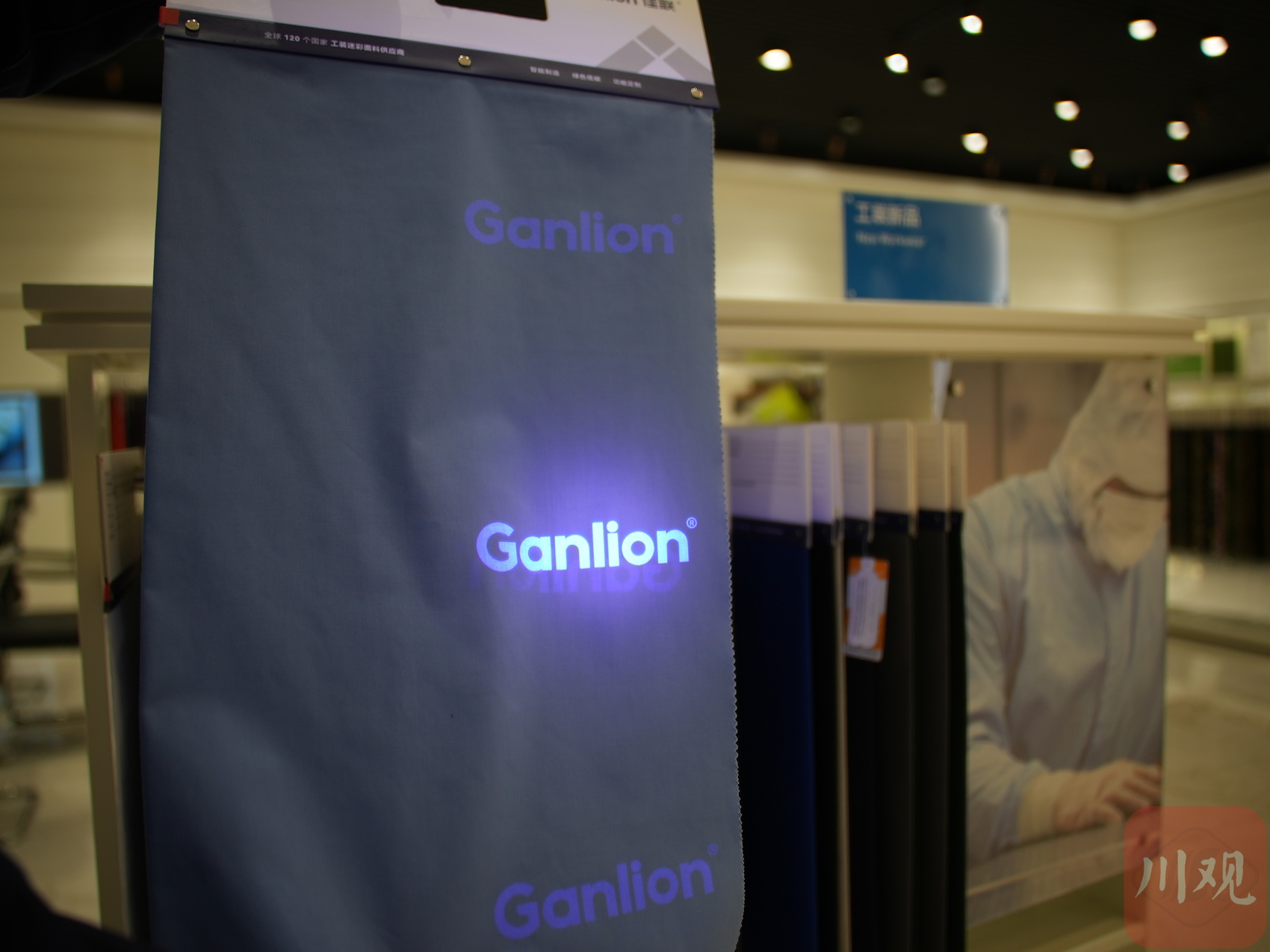 用紫光灯照射面料,会出现防伪标志。(韦维 摄)