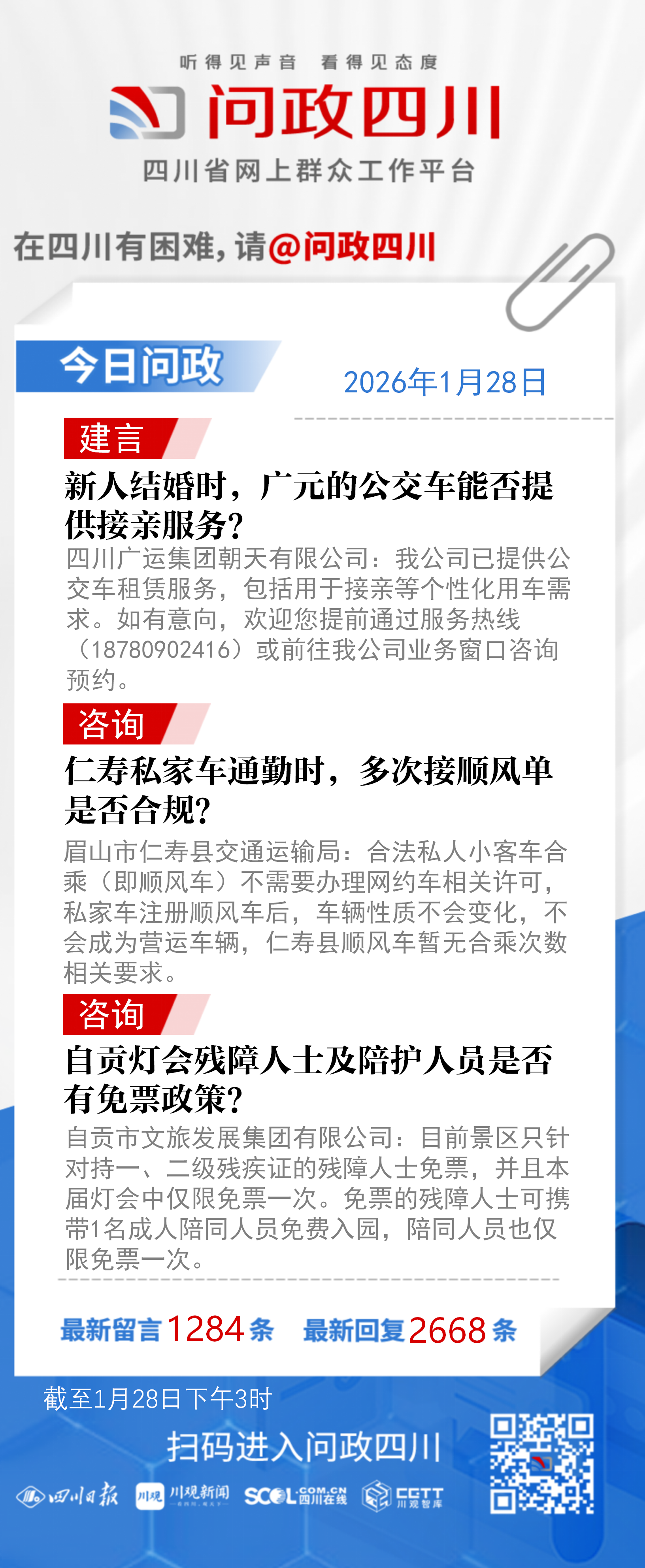 问政四川网友提问:自贡灯会已经开幕,请问本市残障人士及陪护人员进场观灯是否有免票政策?
