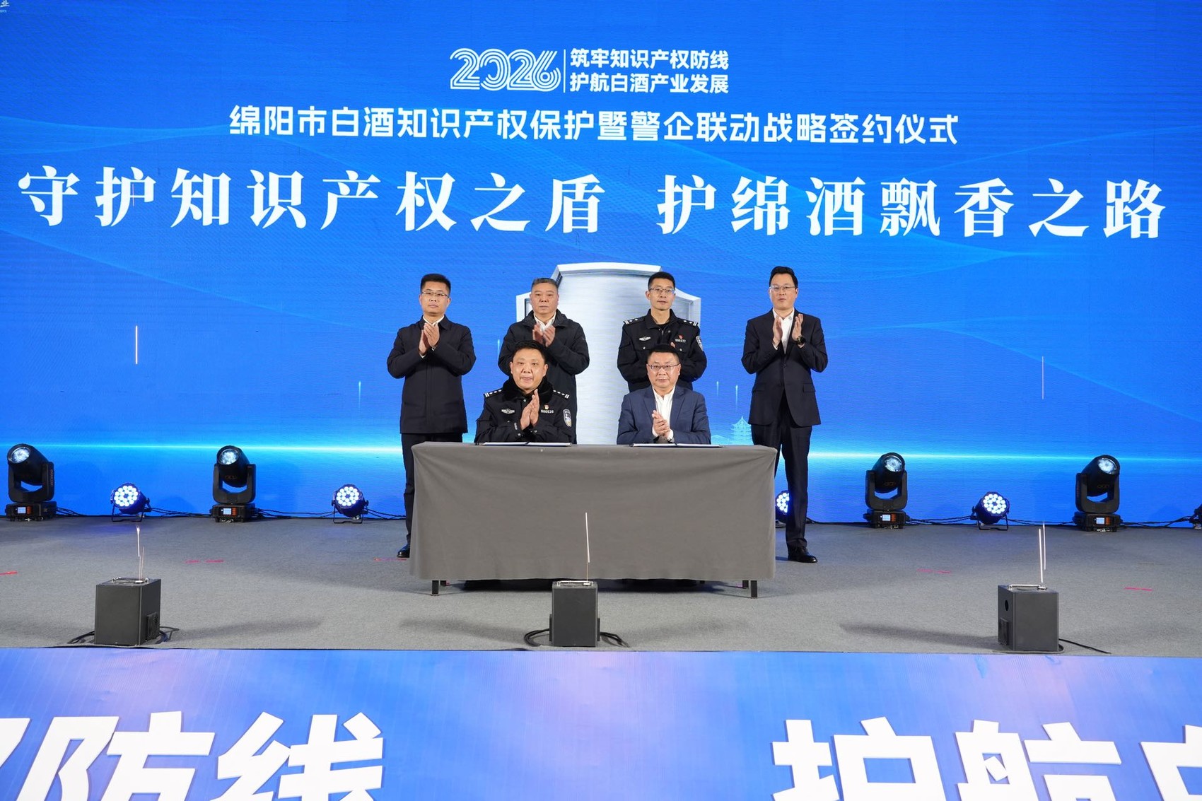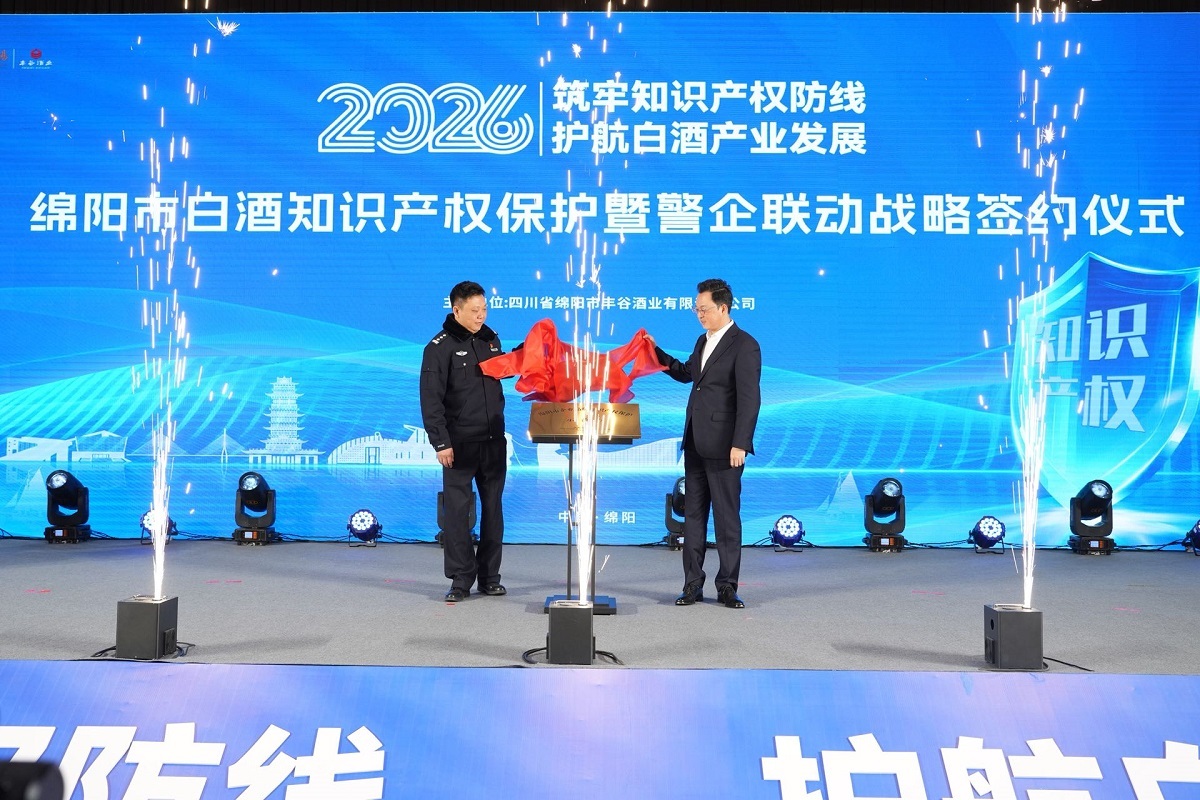 1月27日,在绵阳白酒知识产权保护暨警企联动战略签约仪式现场,绵阳市公安局与丰谷酒业签订警企联动战略合作协议,并为“绵阳市企业品牌知识产权保护示范点”“一站式服务小站”揭牌。