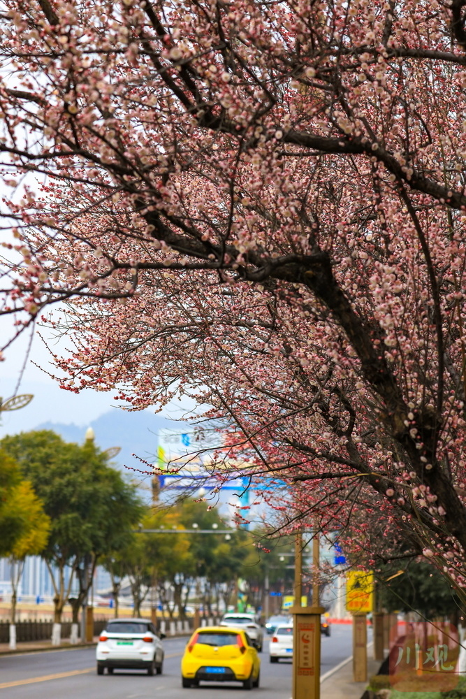 1月28日,走进雅安市雨城区羌江南路、南环中路等地,一排排红梅花次第绽放,疏影横斜、暗香浮动,呈现一派和美祥瑞景象,似在告诉人们,绚丽的春天已临近。