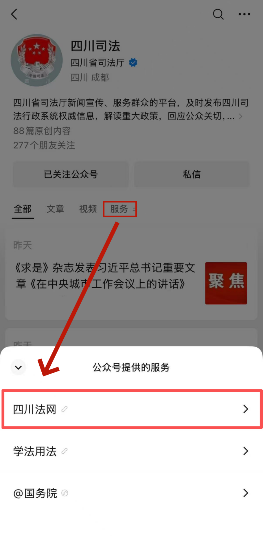 据了解,每场活动的在线服务时间均为当日上午9:30至11:30,下午2:00至5:30。参与者可通过关注“四川司法”官方微信公众号,在该微信公众号中点击“服务”,并在弹窗中选择“四川法网”,进入后在“咨询服务”板块中选择“实时咨询”,并点击选择“社会公众”,注册后登录即可在活动时间内在线咨询。