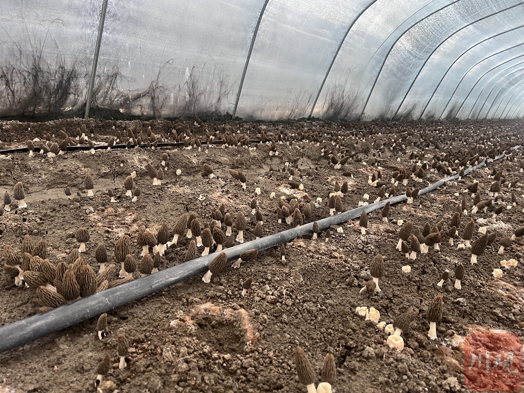 甘春林给土地产出效益算了一笔账:在现有技术下,羊肚菌亩产可达500多公斤。按市场均价每公斤100元计算,仅羊肚菌一项每亩就能带来5万元到6万元左右的收入;加上后续种植西瓜的收益,每亩年产值是单一种植西瓜的5倍。