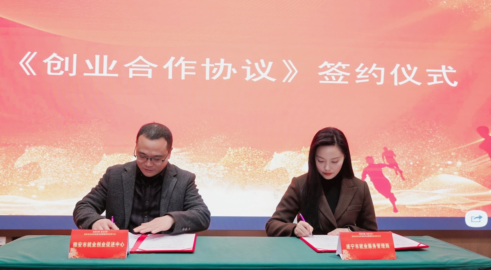 近日,遂宁市人力资源和社会保障局与雅安市人力资源和社会保障局签署《创业合作协议》。据悉,两地人社部门此前已在创业等领域建立了良好协作关系,形成了初步合作成果,此次签约则是紧扣“十五五”规划开局之年的发展契机,对原有协作的进一步深化与升级,标志着两地在创业服务领域的协同合作迈入系统化、常态化新阶段。
