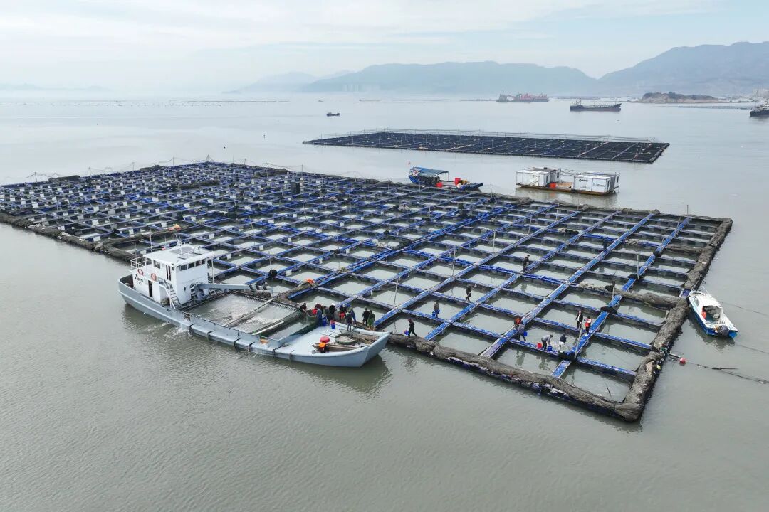 按养殖传统,大黄鱼投苗多选择在清明前后,今年,福建鑫茂渔业开发有限公司率先突破常规,在寒冬时节展开大规模投苗作业。“目前定海湾海域水温在13℃—14℃,温度适宜,而清明前后水温可能降至11℃左右,提前投苗有助于鱼苗逐渐建立耐受性。”卢统锋站在渔排上,望着新入网箱的鱼苗解释道。