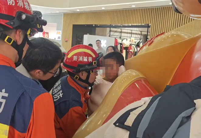 消防员缓慢调整孩子身体角度。图源:浙江消防