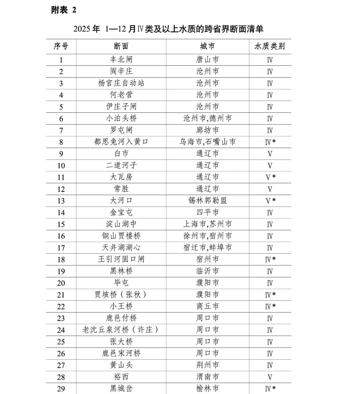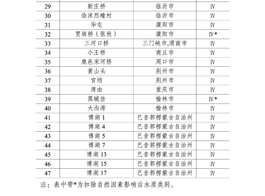 Ⅳ类及以上水质的跨省界断面清单