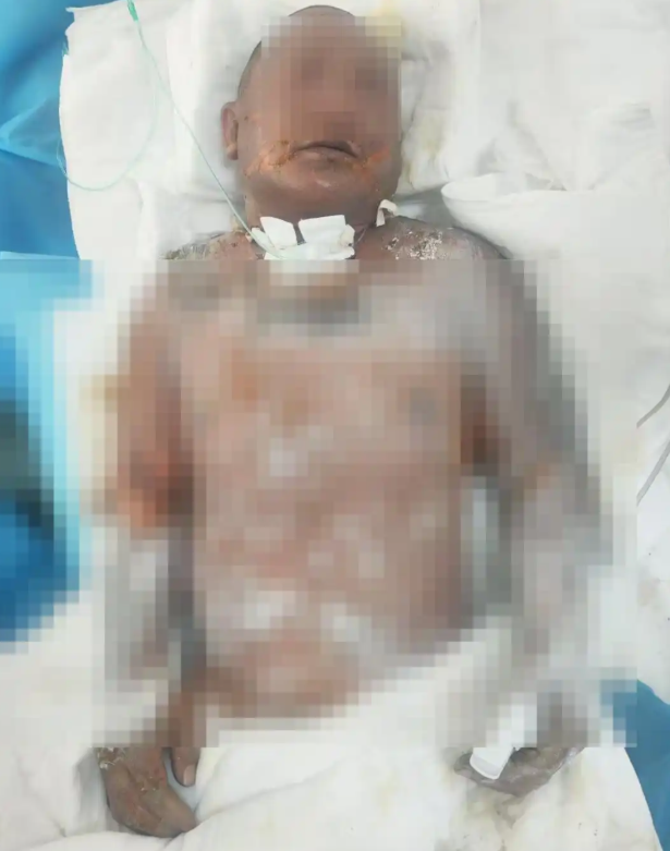 母亲全身约85%被烧伤