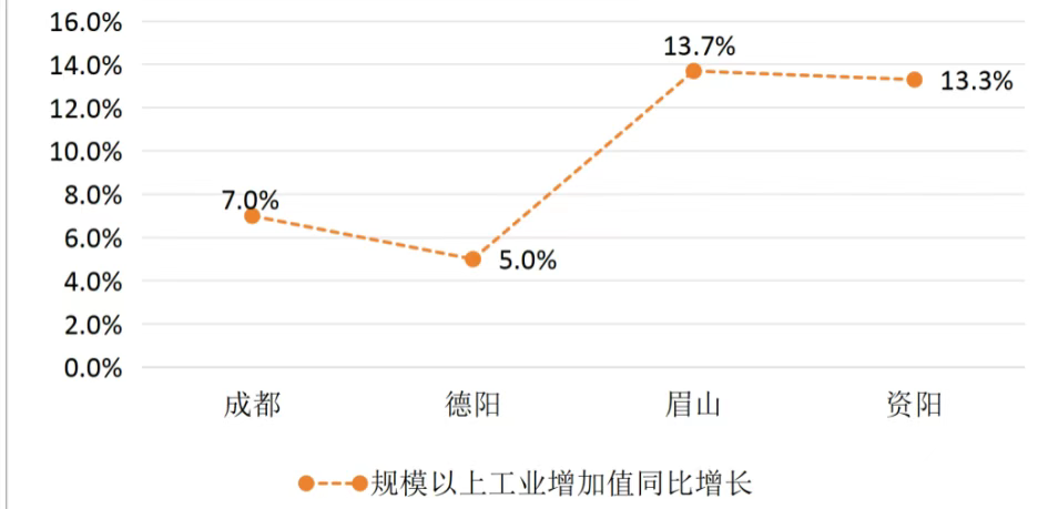 2025年成都都市圈四市规模以上工业增加值增速情况。