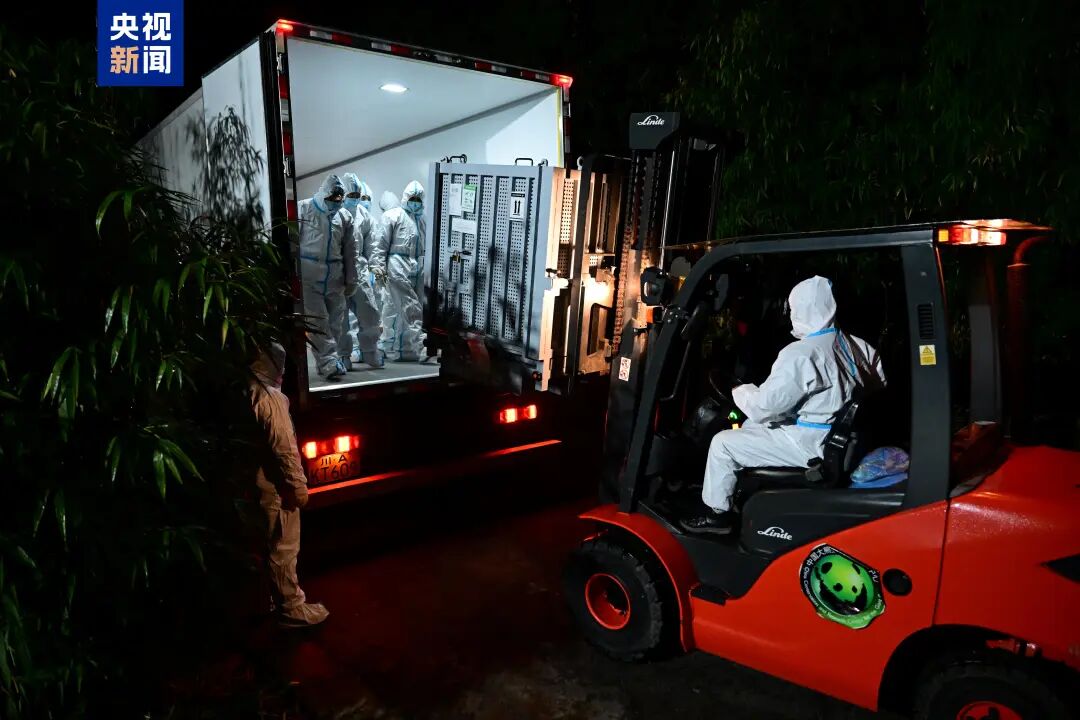 旅日大熊猫“晓晓”“蕾蕾”装运上车