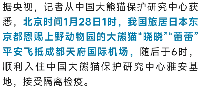 旅日大熊猫“晓晓”“蕾蕾”抵达成都