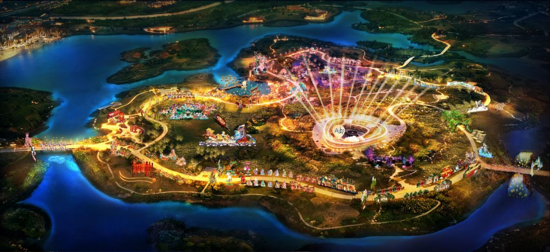 面对溪峰岛330亩湖岛地形,团队则采取“空间游戏”策略:大型灯组占据开阔草地,小型灯组点缀山坡起伏处,形成错落有致的视觉节奏。采用“环形导流+制高点聚焦”的布展策略,确保游客不走回头路也能完整体验五大主题。