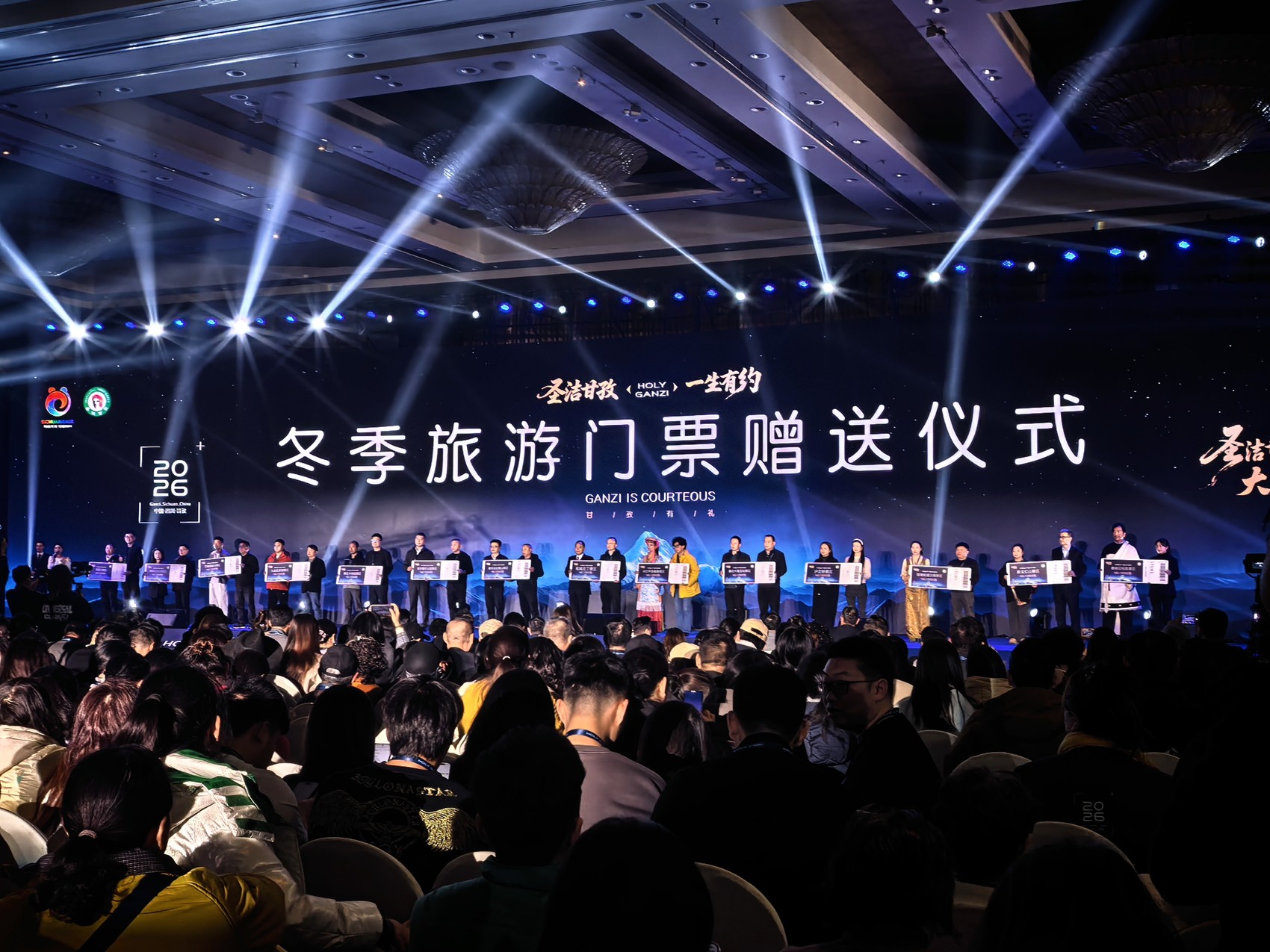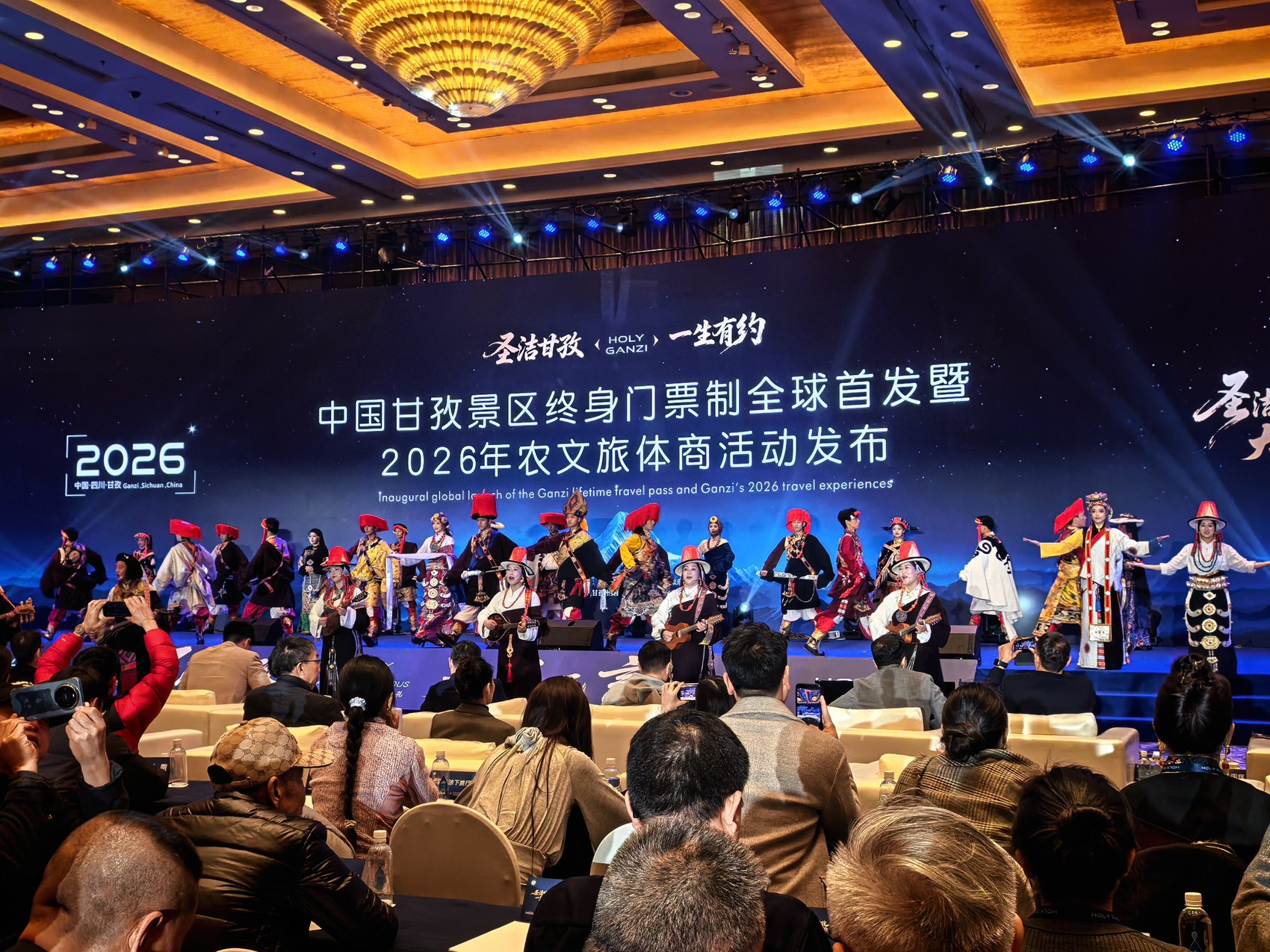 115处A级旅游景区星罗棋布,165项珍贵非遗底蕴深厚,无数游客沿着国道318、国道317两条纵贯线,走进甘孜、感受甘孜……1月28日,以“圣洁甘孜·一生有约”为主题的中国甘孜景区终身门票制全球首发暨2026年农文旅体商活动发布会在成都举行,标志着甘孜州以开放的胸怀和前瞻的视野正式向全球游客发出“一生之约”的诚挚邀请。来自世界旅游组织及外国旅游机构、省内外旅行社及自驾游俱乐部代表、资深导游、甘孜全球特约摄影师代表、主流媒体与知名文旅自媒体达人共计1500余人参加。