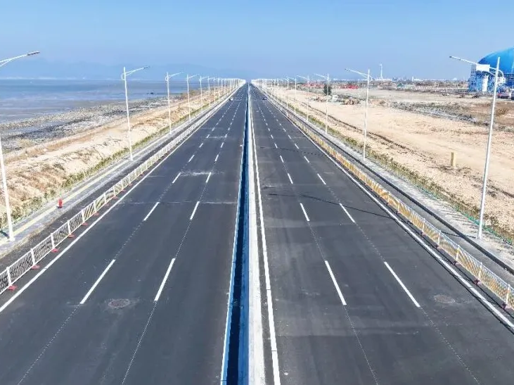 近日,古雷开发区西侧疏港大道一期工程陆域段建设任务全部完成,标志着这条肩负疏港通园重任的疏港“新动脉”正式具备交工验收及试通车条件。