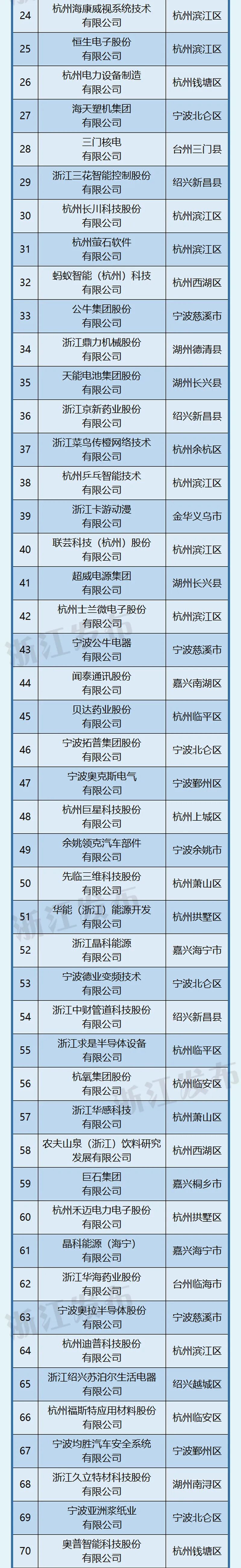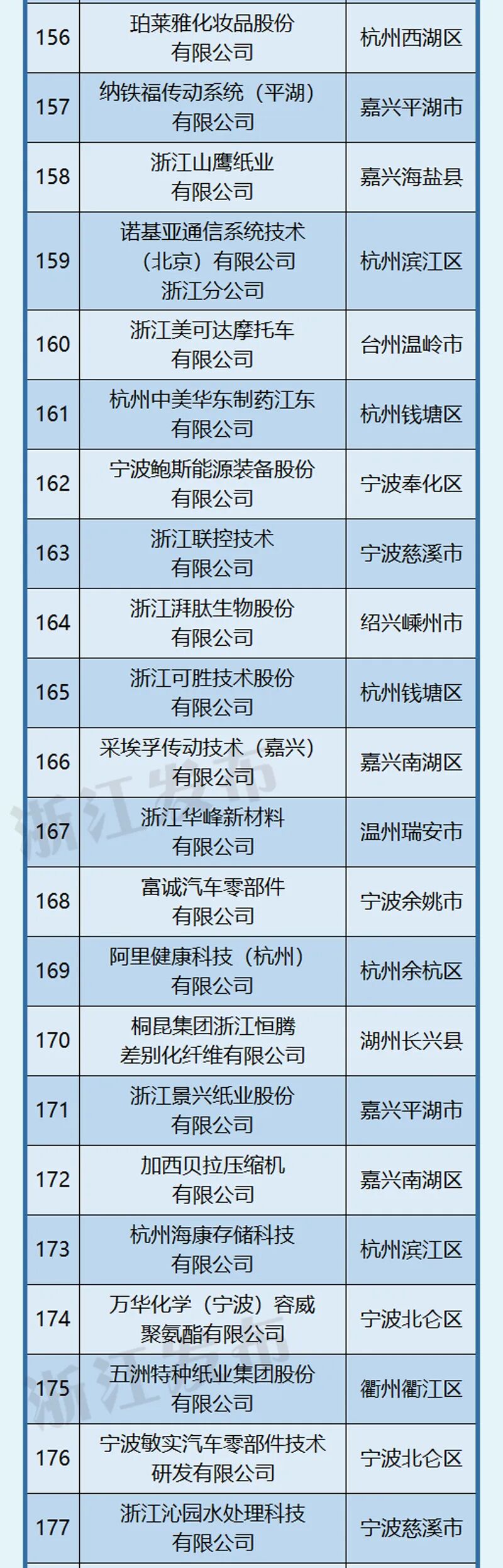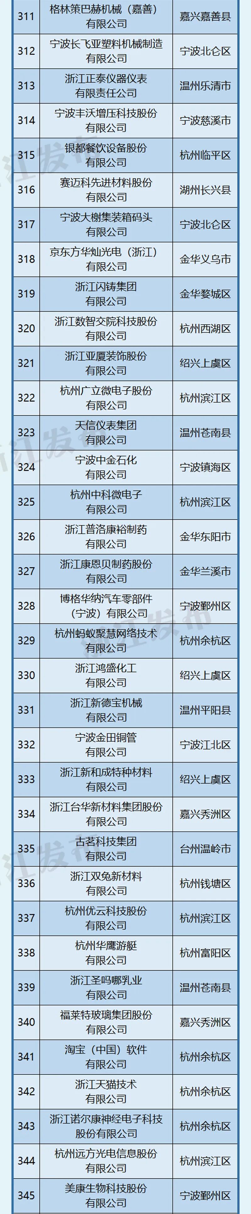 杭州、宁波引领作用明显,杭州以202家位居榜首,宁波101家紧随其后。此外,嘉兴市入选58家,位居第三位。