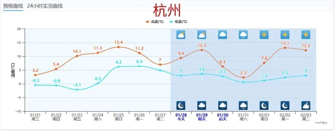 好天气总是暂时的,1月30日至31日,受低涡切变和弱冷空气共同影响,浙江又将迎来一次较明显的降水过程。31日,浙江将达到冷空气影响的顶峰,低温冰冻雨雪齐齐杀到。全省阴有雨,浙西北山区部分有雨夹雪或雪,沿海海面有8-9级偏北风。全省气温将再度下降,看这气温趋势图比过山车还陡。