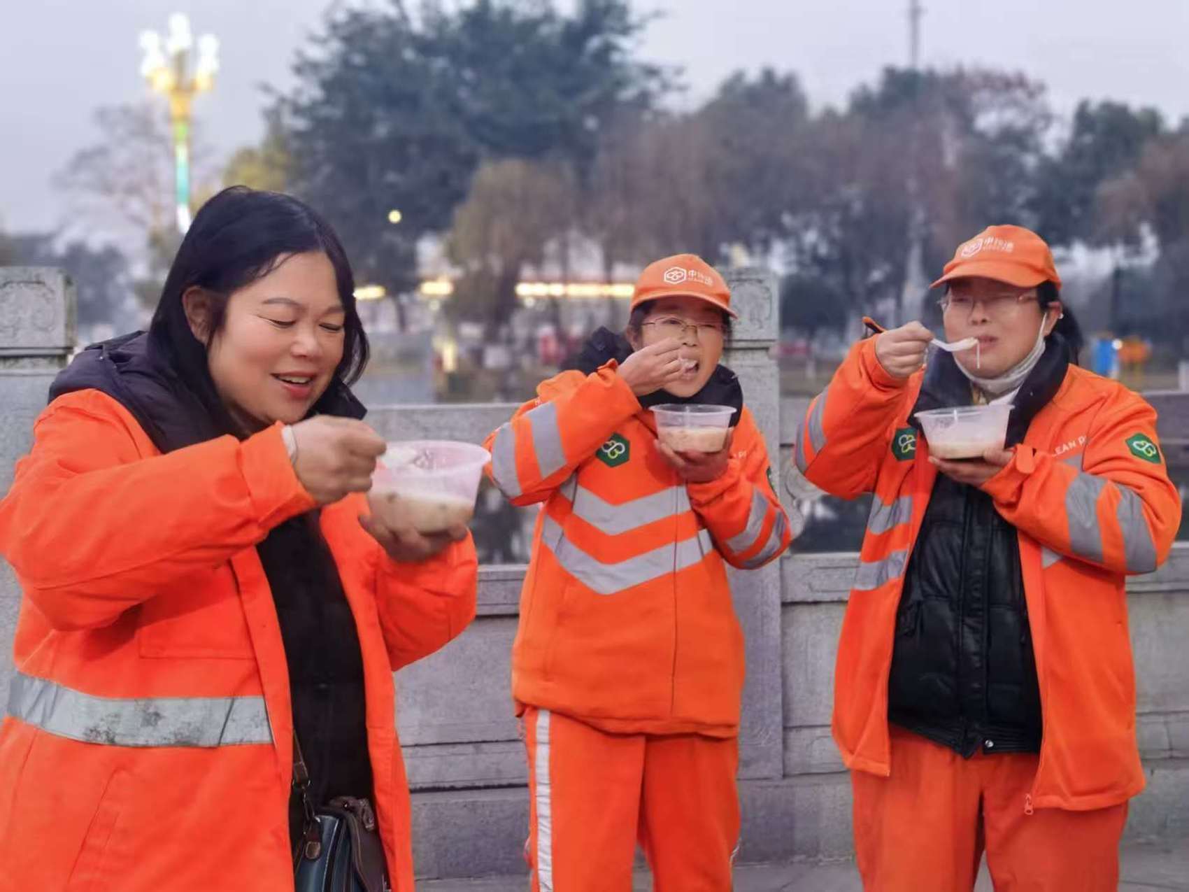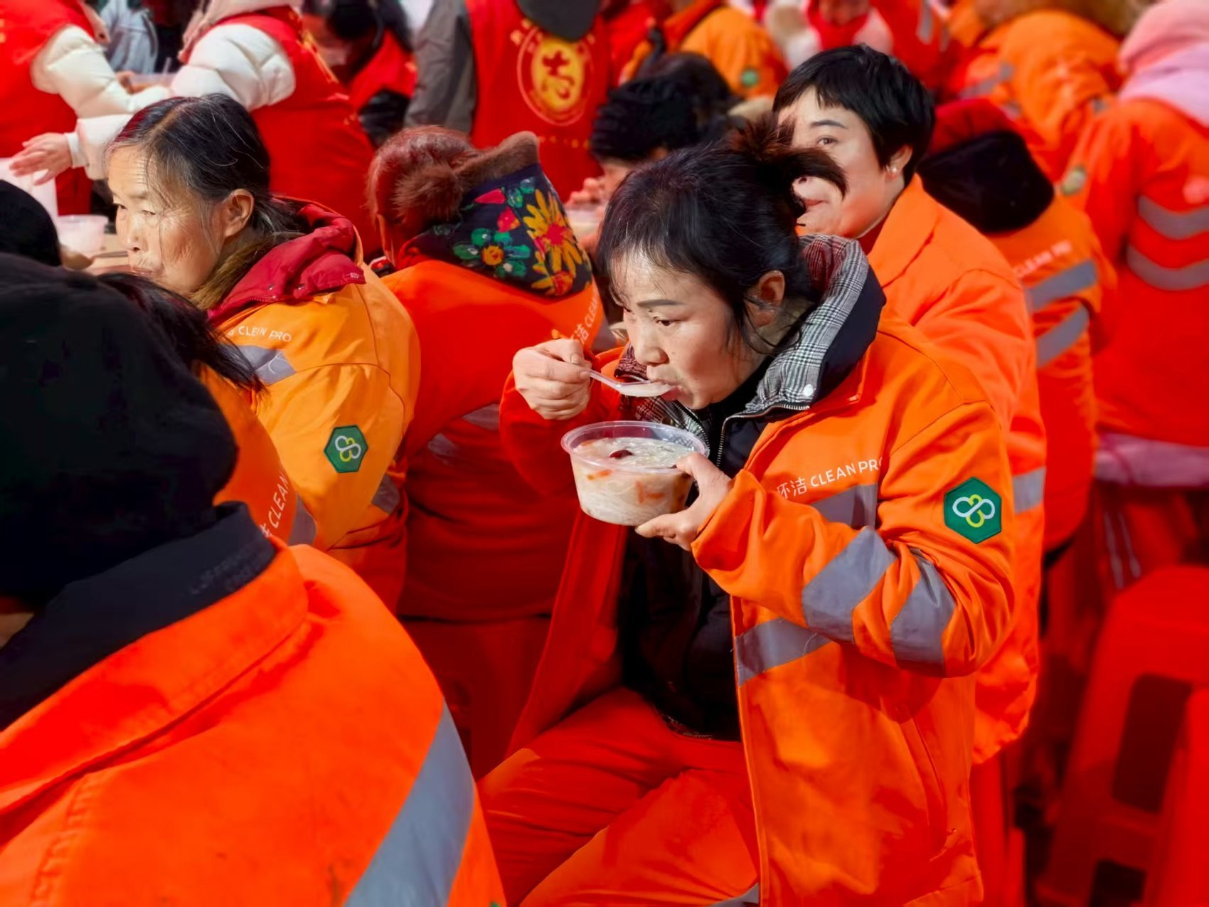 活动现场氛围温馨有序。环卫工人接过热粥,脸上洋溢笑容。“每年腊八都记得我们,这碗粥暖身更暖心。”一位环卫工人表示,这份持续七年的关怀让自己感到被尊重,工作也更有动力。