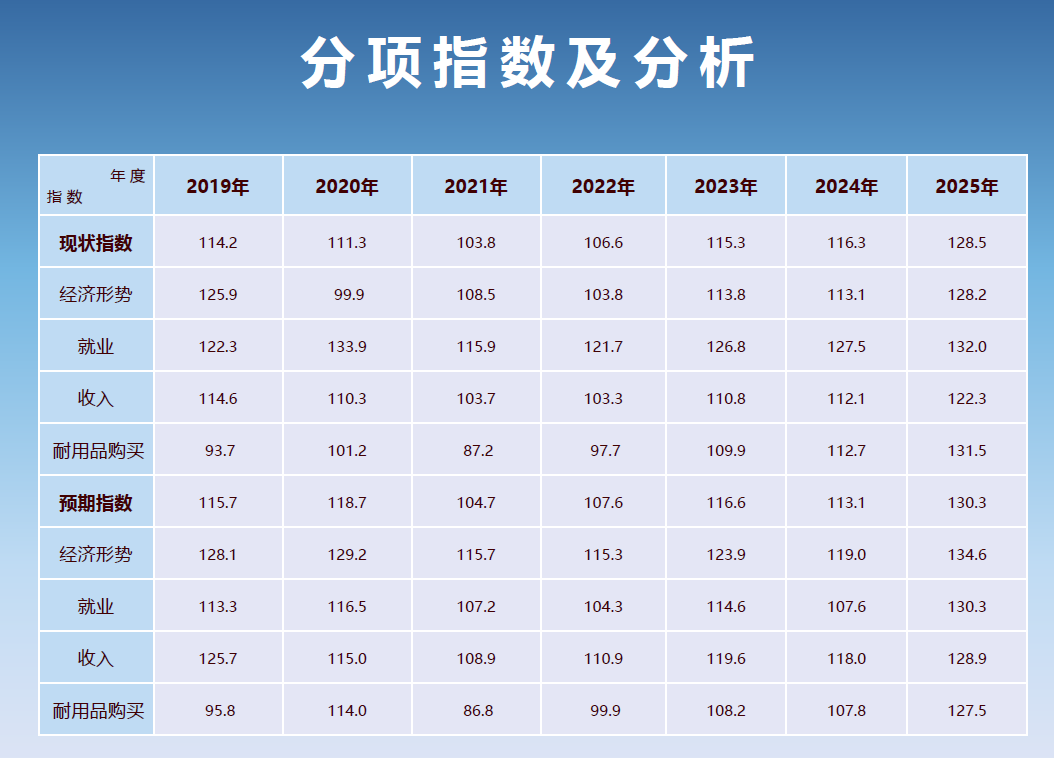 从2025年调查数据看,成渝地区双城经济圈消费者信心呈现整体上扬态势,经济形势、就业、收入、耐用品购买等分项指标均较上一年度有不同程度改善。
