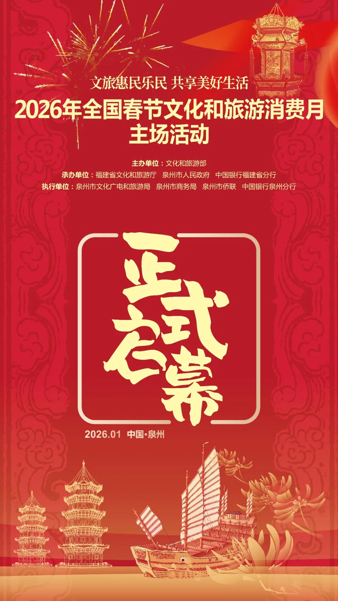文旅惠民乐民,共享美好生活!今天,由文化和旅游部主办的2026年全国春节文化和旅游消费月主场活动在福建省泉州市正式启幕。