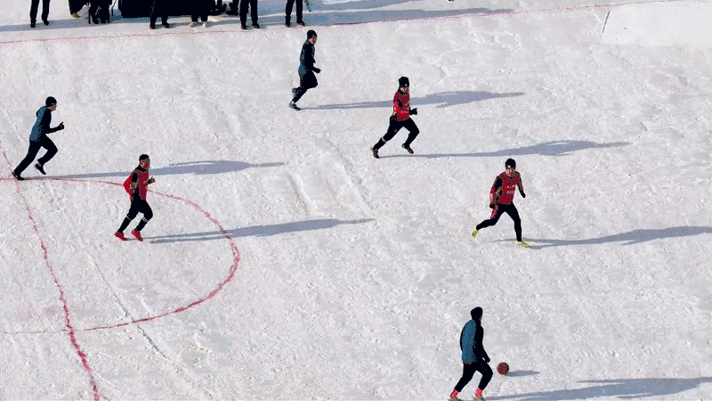 贵州“村超”队伍强势加盟,与来自黑龙江、辽宁、吉林等地的球队齐聚冰雪赛场。队员们以球会友,共赴这场集竞技乐趣、文化交流与乡土情怀于一体的冬日狂欢。