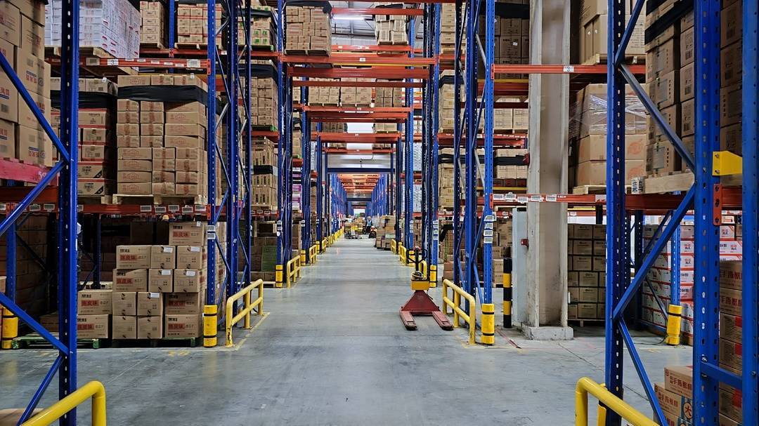 物流平台大仓中堆放的年货。企业供图