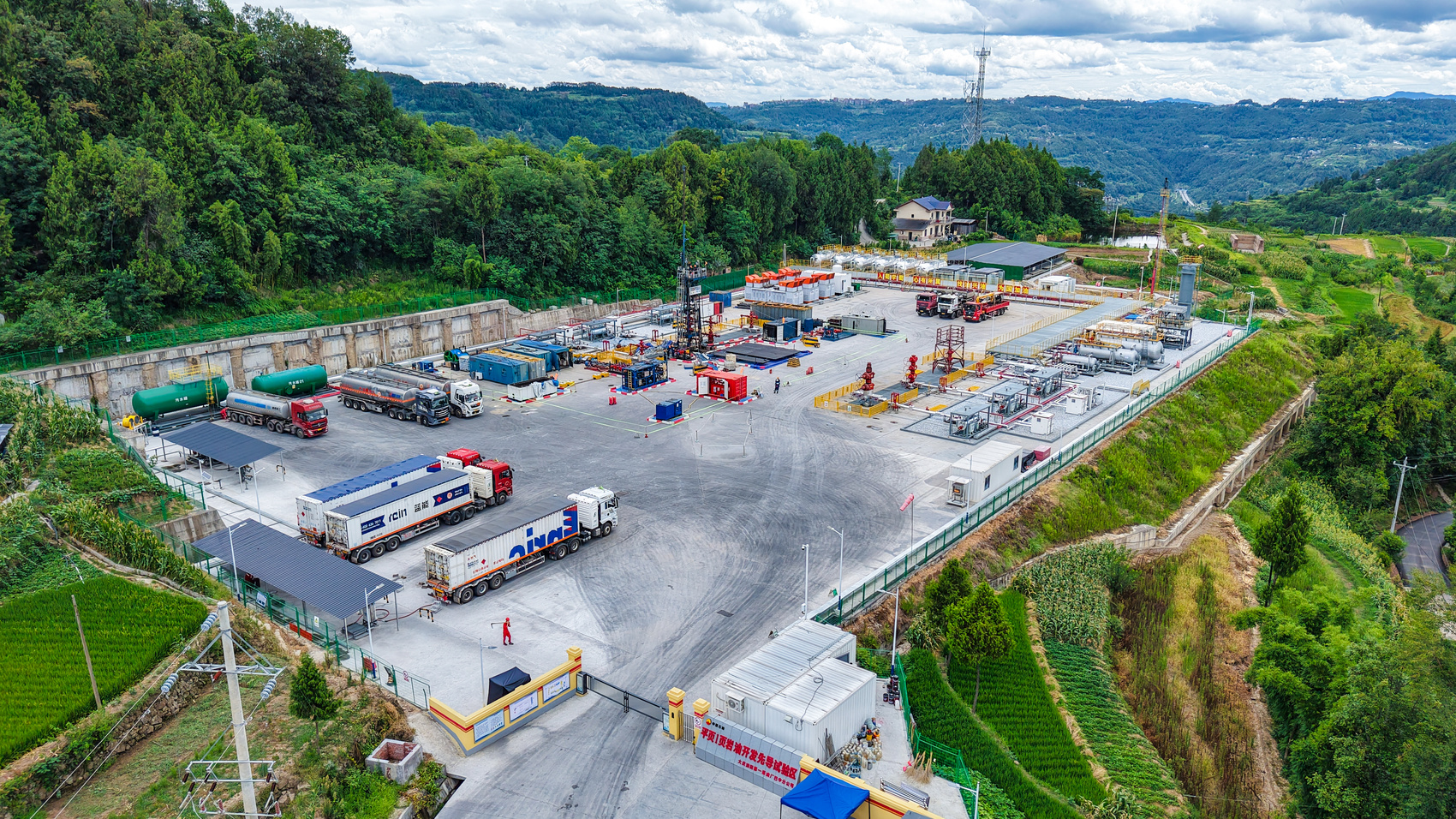 据板庙镇党委书记付杰介绍,试验区于2023年5月开始钻井,2025年2月13日投产。井场面积约17100平方米,内设有6口水平井,平均垂深3161米,平均水平段长度1679米,目的层位凉高山组上段。