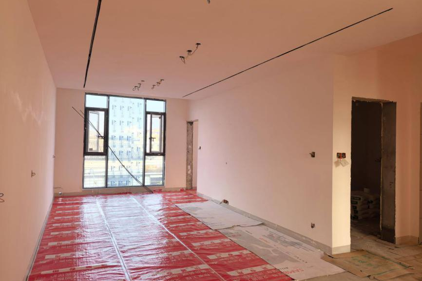 冬日暖阳洒在洛带镇槐树北街蓝海小区崭新的米白色外墙上,让这栋楼在周边一众老旧房屋中显得有些与众不同。走进4楼居民何智胜的家,地砖已铺好,墙面刷得雪白,待室内门窗和电视柜到货后即将开始安装。