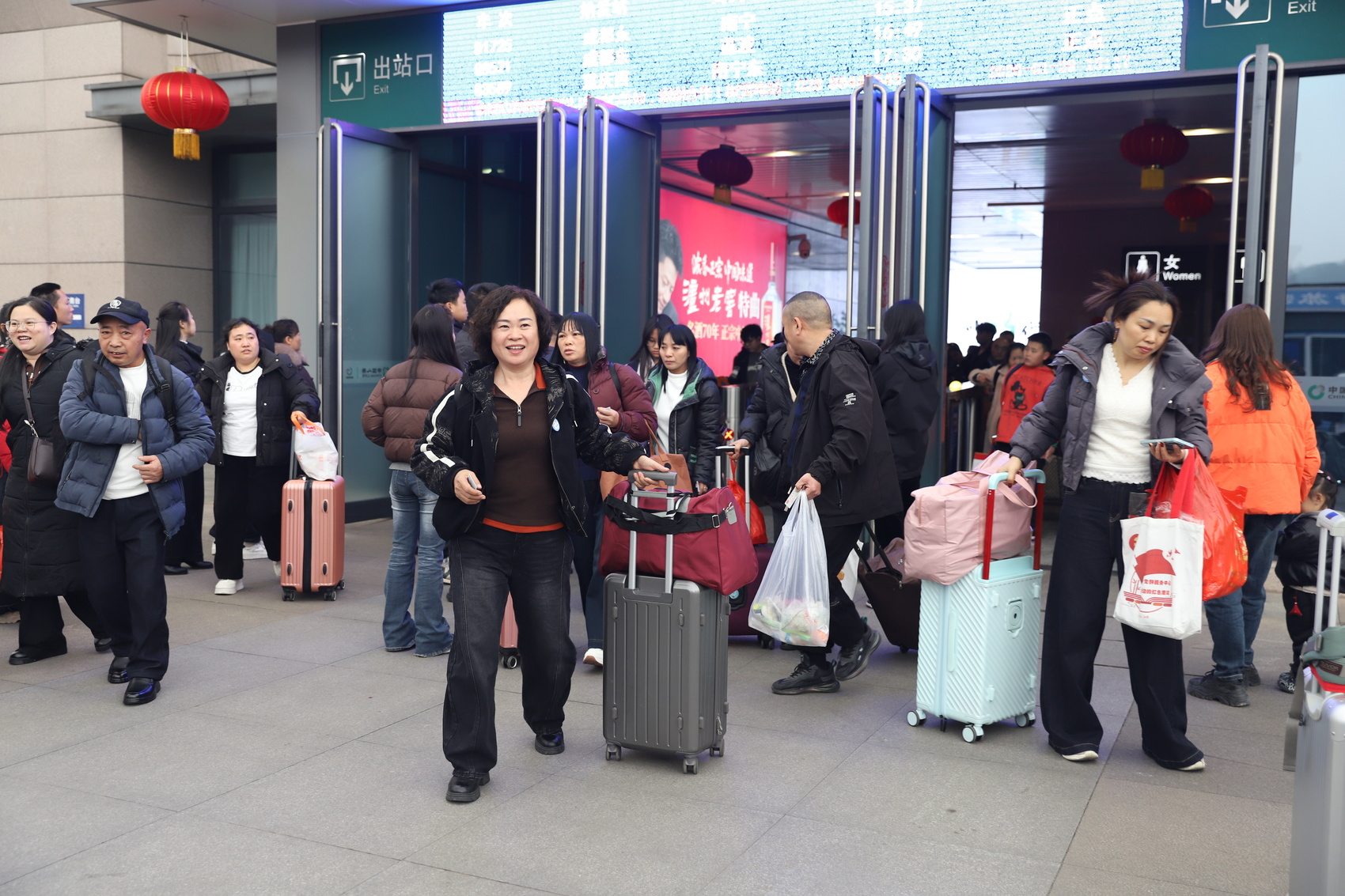 王进良提着大包小包走下动车。在广东务工30多年,他每年回家过年都会经历一场兵荒马乱。“春节抢票真的难!去年没抢到高铁直达票,到贵阳中转换乘,路上花费的时间长、费用高,还很累。”他感慨地说,今年家乡专门安排列车接他们回家过年,心里特别暖。他坦言,家乡这些年经济发展快、环境也好,打算趁过年找找合适的工作,“如果顺利,春节后就不出去打工了。”