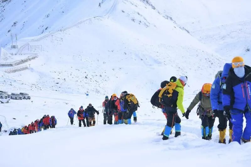 图为2025年5月2日,登山爱好者正在向海拔6010米的洛堆峰峰顶进发。记者 潘多 郑璐 明吉 摄