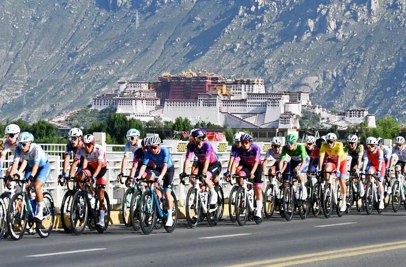 图为2025年8月9日,中国西藏第六届跨喜马拉雅国际公路自行车极限赛第三赛段拉萨绕圈赛在拉萨市鸣枪开赛。记者 洛桑平措 摄