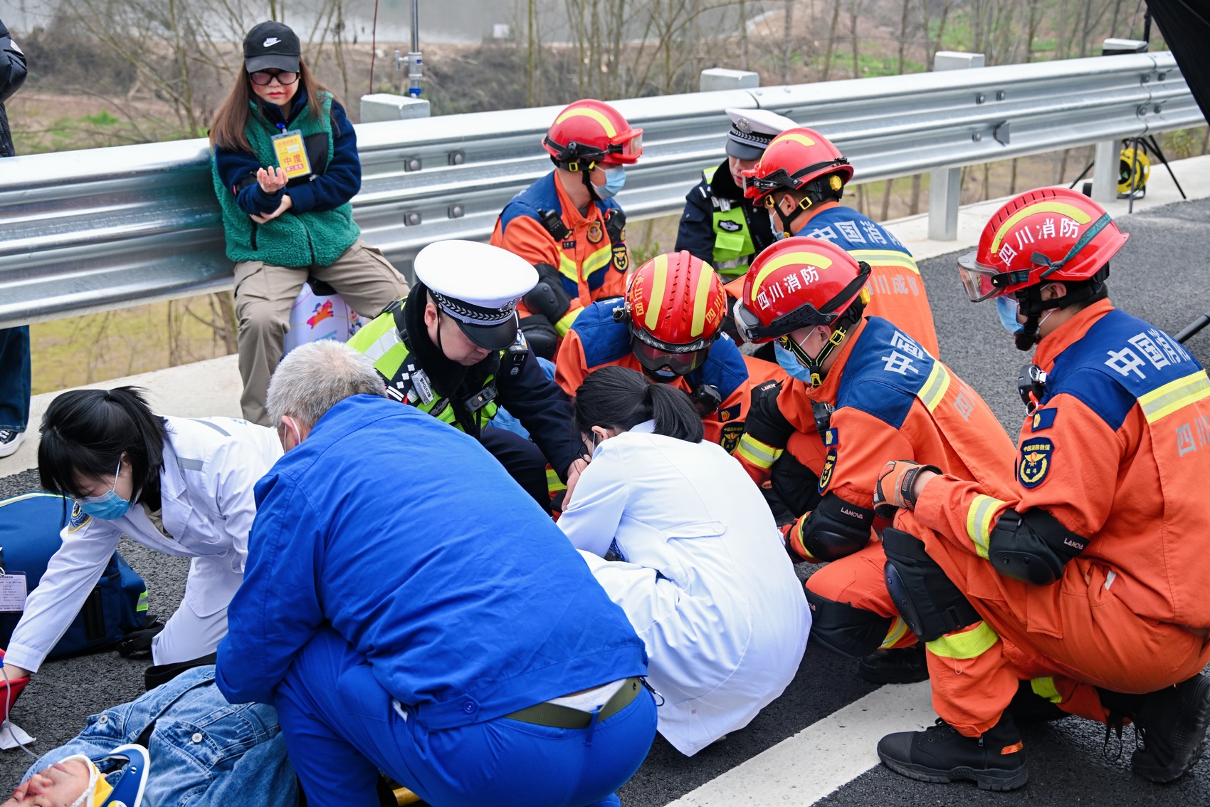 演练中,交管、消防、医疗等部门快速抵达现场,救援过程有条不紊。四川省公安厅交通管理总队相关负责人介绍,全省高速公安联合交通执法、监控运营、路产管护、协同管控建立起“五岗合一”机制,通过多点位梯次布置救援力量,全力实现“1分钟发现、1分钟调度、10分钟到达”,在这个过程中,利用无人机主动预警、全线动态限速等手段,应用防撞吸能车、车辆防闯入预警系统,不断提升全路段、全时段、多维度事件精准感知与协同处置能力。