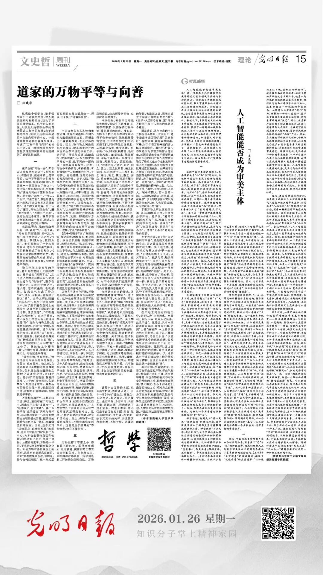 内容:《光明日报》(2026年01月26日15版)《人工智能能否成为审美主体》(作者:岳友熙)