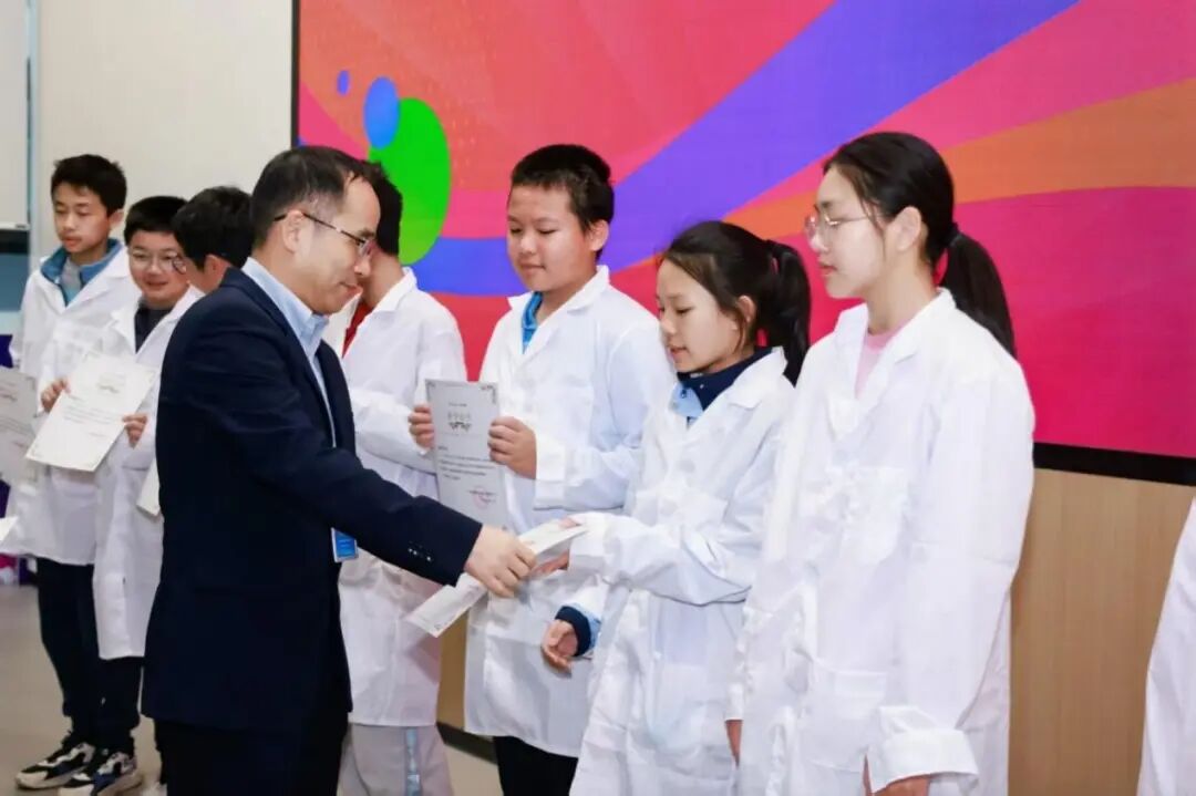 在活动尾声,一品红药业集团研究院院长、首席科学家杨文谦博士为小记者们颁发研学证书,这意味着本次活动任务顺利达成!杨文谦博士寄语年轻一代一定要尽力开拓视野,也希望此次走进一品红创新研发基地,能让他们直观感受本土医药创新脉搏,了解药品背后的科研故事与社会价值,从而启迪未来职业理想,为广州生物医药产业的持续发展播撒希望的火种!