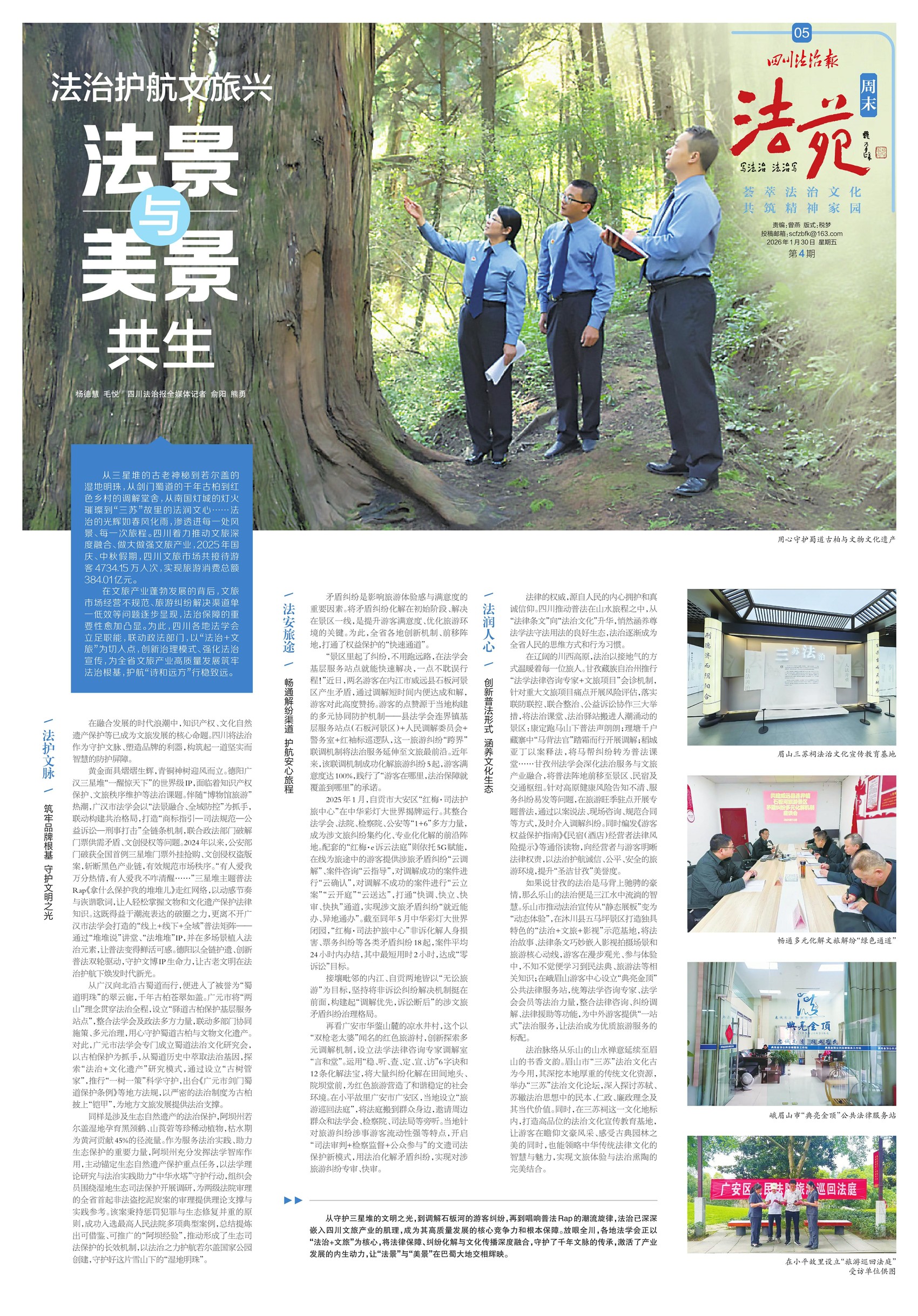 从三星堆的古老神秘到若尔盖的湿地明珠,从剑门蜀道的千年古柏到红色乡村的调解堂舍,从南国灯城的灯火璀璨到“三苏”故里的法润文心……法治的光辉如春风化雨,渗透进每一处风景、每一次旅程。四川着力推动文旅深度融合、做大做强文旅产业,2025年国庆、中秋假期,四川文旅市场共接待游客4734.15万人次,实现旅游消费总额384.01亿元。